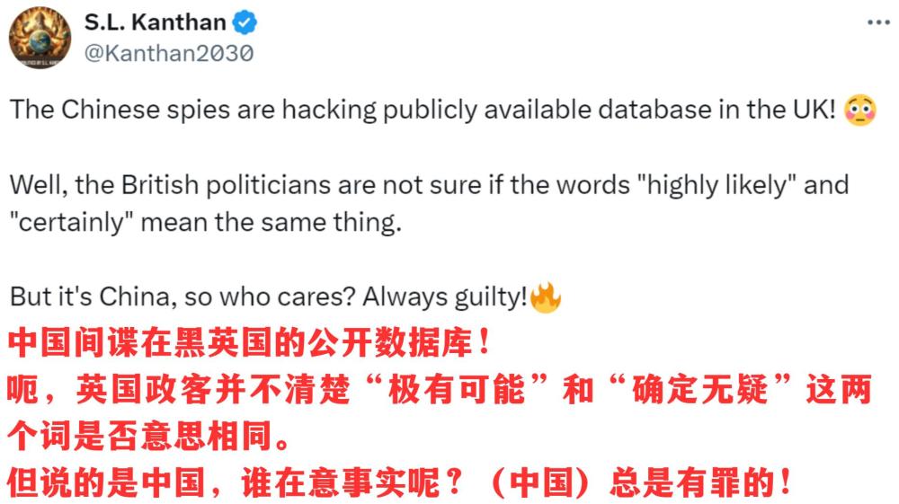如今,“中國(guó)=網(wǎng)絡(luò)黑手”似乎成了某些西方政客用來(lái)解釋一切負(fù)面事件的萬(wàn)能答案。凱特王妃被網(wǎng)友“黑”過頭?怪中國(guó)去。一艘由丹麥公司租用、懸掛新加坡國(guó)旗、前往斯里蘭卡的船撞上美國(guó)橋?還是怪中國(guó)去。