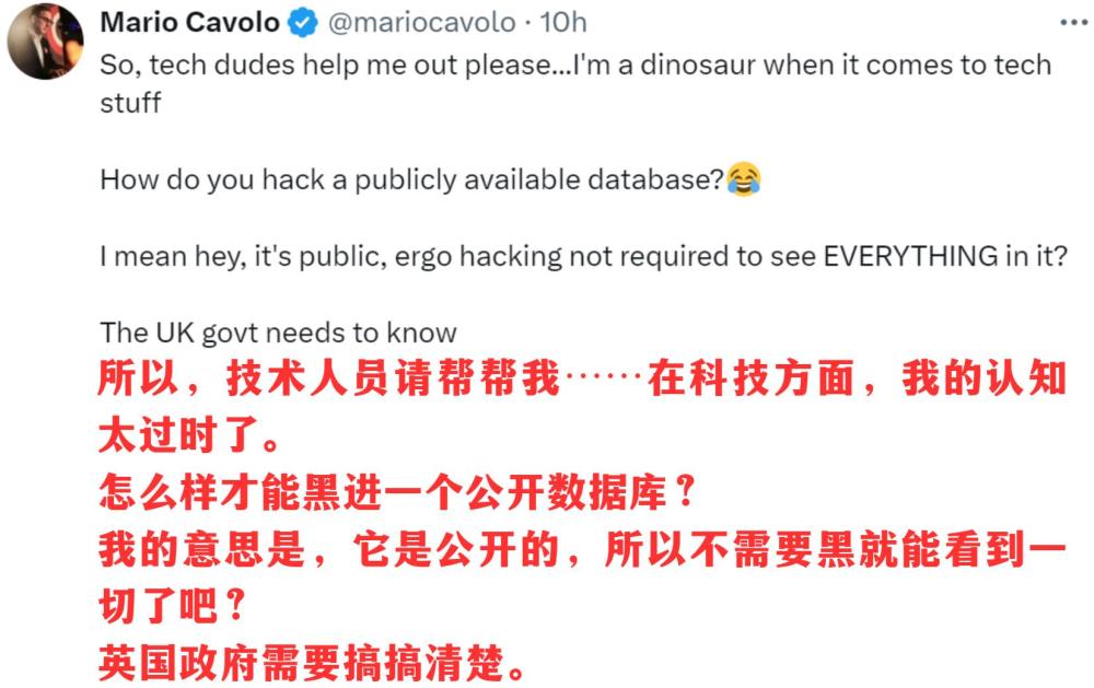 更重要的是,相關(guān)政客言論中的邏輯謬誤也讓人不忍直視。脫口秀特意截取了英國(guó)議會(huì)議員帕特·麥克法登的提問:“副首相為什么認(rèn)為中國(guó)政府會(huì)去黑一個(gè)公開數(shù)據(jù)庫(kù)?”這也讓美國(guó)作家馬意駿忍俊不禁: