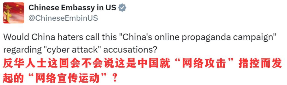 中國(guó)駐美大使館在社交平臺(tái)轉(zhuǎn)發(fā)脫口秀時(shí)也幫忙發(fā)問: