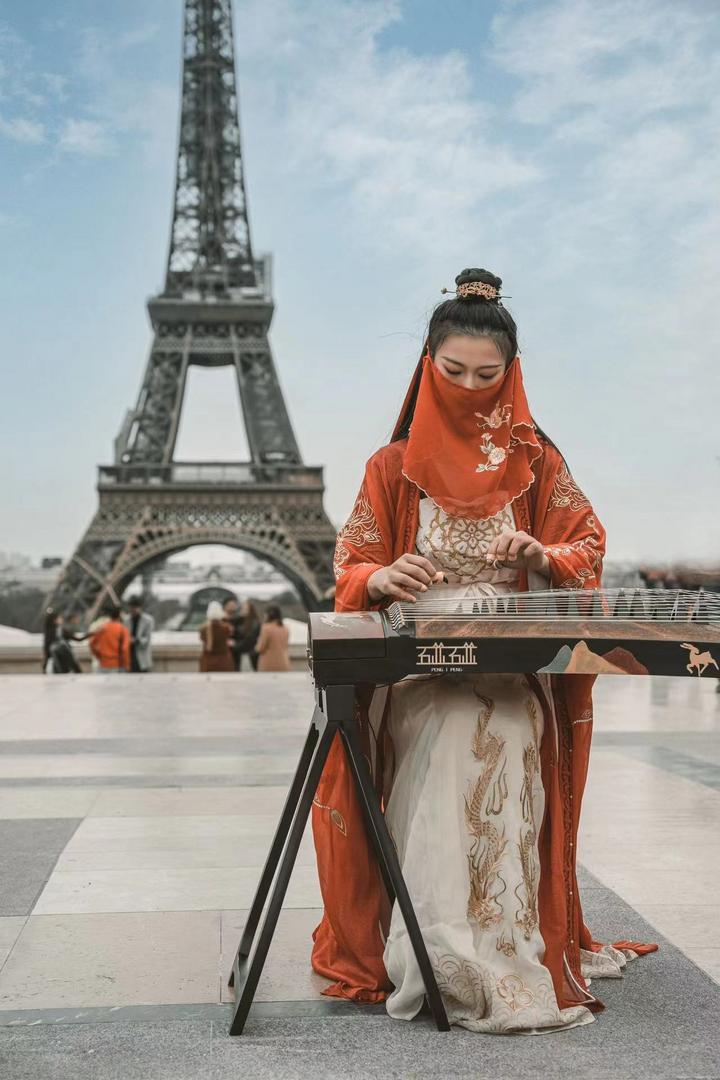 下一年的新學(xué)期,彭靜旋從國(guó)內(nèi)運(yùn)來古箏,精心挑選曲目,開始在街頭彈奏。從那之后,歷史悠久的波爾多大劇院廣場(chǎng)前,出現(xiàn)了一個(gè)穿著漢服、戴著面紗的東方女孩,她撥弄琴弦,時(shí)而清脆、時(shí)而渾厚、時(shí)而悠揚(yáng)的音樂自在流淌。