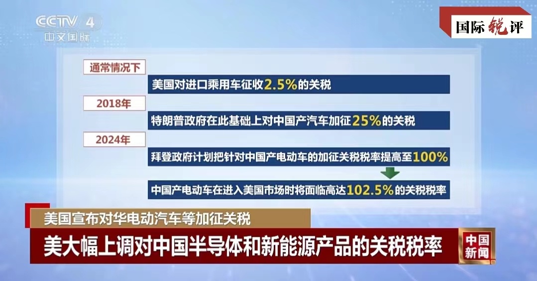 這其中,對(duì)中國(guó)電動(dòng)汽車加征的進(jìn)口關(guān)稅令人瞠目——從27.5%升至102.5%,對(duì)太陽(yáng)能電池的進(jìn)口稅從25%提高到50%,對(duì)鋰電池的關(guān)稅稅率從7.5%提高到25%。不難看出,美國(guó)政府此次針對(duì)的重點(diǎn)是中國(guó)新能源相關(guān)產(chǎn)業(yè)。難怪美國(guó)多名高官近期密集炒作所謂中國(guó)新能源“產(chǎn)能過(guò)剩”,不過(guò)是為加征關(guān)稅制造借口。