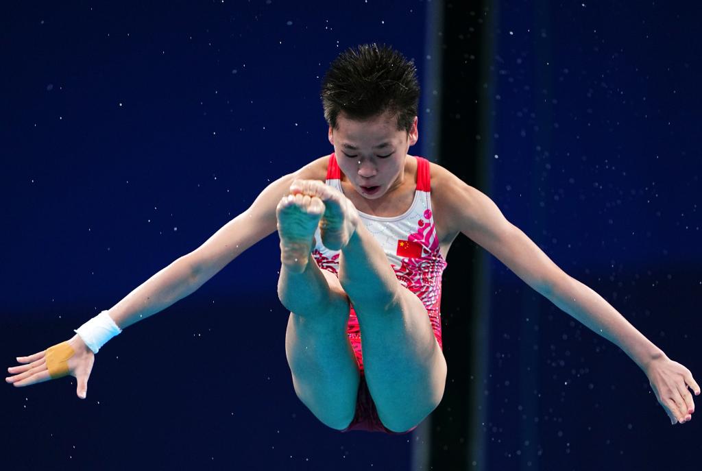 2021年8月5日,中國(guó)選手全紅嬋在比賽中。新華社記者 許暢 攝