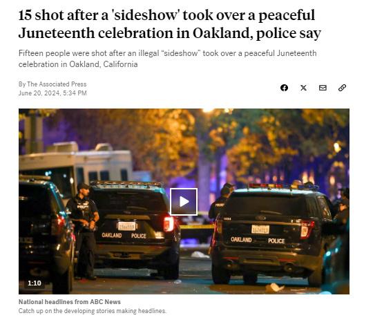 據(jù)美國廣播公司(ABC)報道,當(dāng)?shù)貢r間20日,美國警方表示,加利福尼亞州奧克蘭市19日晚發(fā)生槍擊事件,已造成15人受傷。