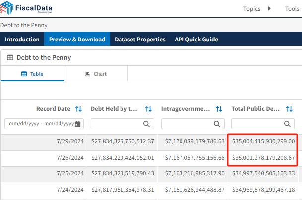 一份來(lái)自美國(guó)財(cái)政部的報(bào)告顯示,美債早在2024年初,即本財(cái)年伊始,就已突破34萬(wàn)億美元,如今僅用半年時(shí)間,又增加了1萬(wàn)億美元。