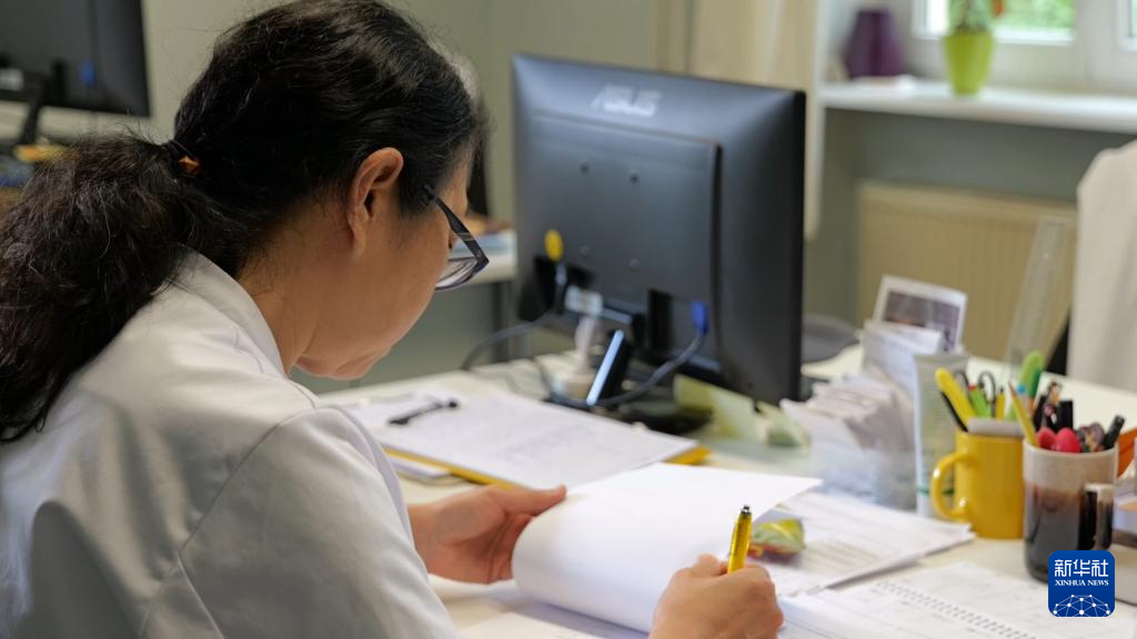 7月11日,在德國巴伐利亞州巴德魁茨汀,北京中醫(yī)藥大學魁茨汀醫(yī)院的中醫(yī)醫(yī)生在記錄病患信息。 新華社記者 賈金明 攝