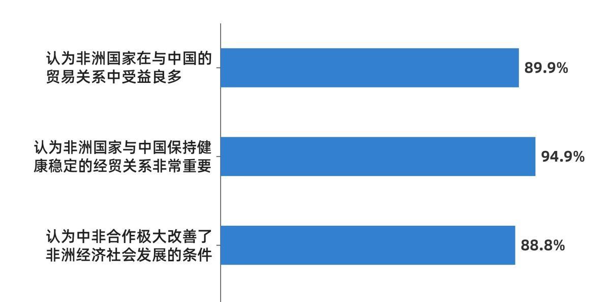 作為非洲實現(xiàn)現(xiàn)代化目標(biāo)的同行者,高效務(wù)實的中非合作為中非關(guān)系健康穩(wěn)定發(fā)展注入了不竭動力,也獲得非洲青年的高度肯定。中非在共建“一帶一路”倡議和中非合作論壇等機制平臺上不斷深化合作,成果涵蓋經(jīng)貿(mào)、基建、民生等多個領(lǐng)域,新時代中非命運共同體建設(shè)不斷走深走實,持續(xù)造福雙方民眾。調(diào)查中,89.9%的受訪青年認(rèn)為非洲國家在與中國的貿(mào)易關(guān)系中受益良多,94.9%的受訪青年認(rèn)為非洲國家與中國保持健康穩(wěn)定的經(jīng)貿(mào)關(guān)系非常重要,88.8%的受訪青年認(rèn)為中非合作極大改善了非洲經(jīng)濟社會發(fā)展的條件,為非洲帶來了寶貴發(fā)展機遇。