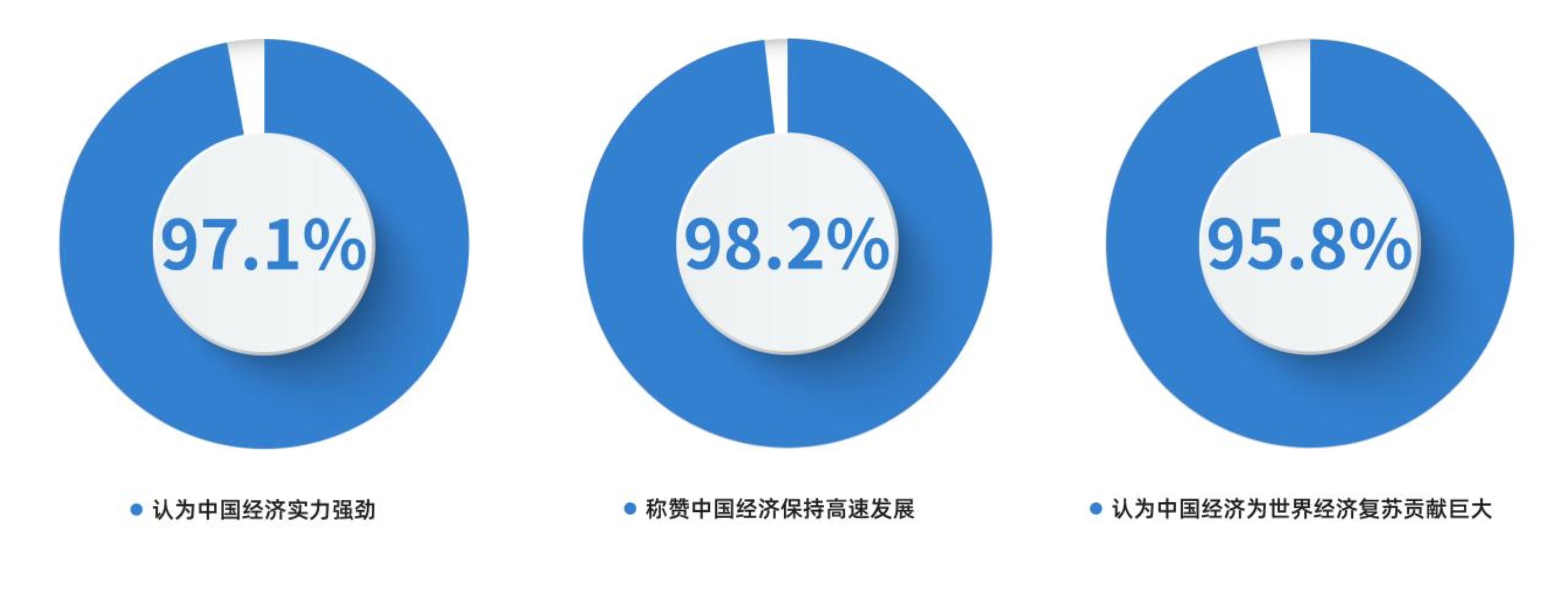 受訪青年超高的對華好感度主要源于對中國式現(xiàn)代化發(fā)展理念與成就的高度認(rèn)可,經(jīng)濟與科技領(lǐng)域表現(xiàn)尤為突出。調(diào)查中,97.1%的受訪青年認(rèn)為中國經(jīng)濟實力強勁,98.2%的受訪青年稱贊中國經(jīng)濟保持高速發(fā)展,95.8%的受訪青年認(rèn)為中國經(jīng)濟為世界經(jīng)濟復(fù)蘇貢獻巨大。