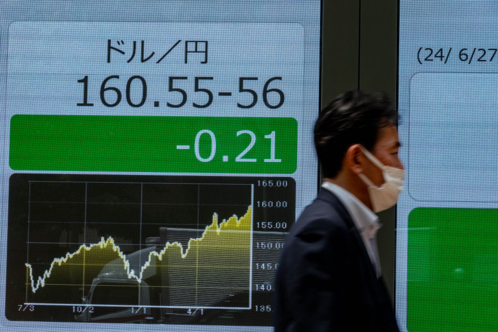 6月27日,行人走過日本東京一處顯示實(shí)時(shí)匯率的電子屏幕。新華社記者張笑宇攝