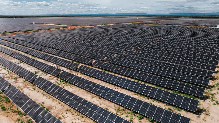 這是2024年6月7日在巴西皮奧伊州拍攝的馬蘭加圖光伏電站(無人機(jī)照片)。新華社記者 王天聰 攝