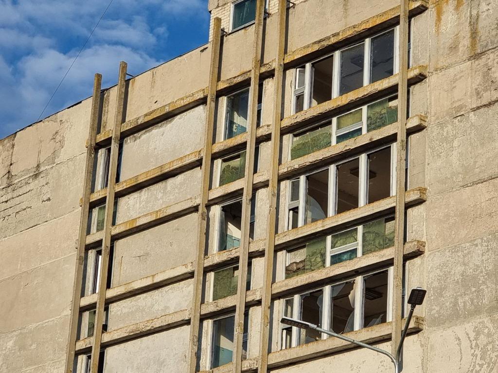 這是9月10日在烏克蘭切爾卡瑟州拍攝的在無人機(jī)爆炸沖擊中受損的建筑。新華社發(fā)