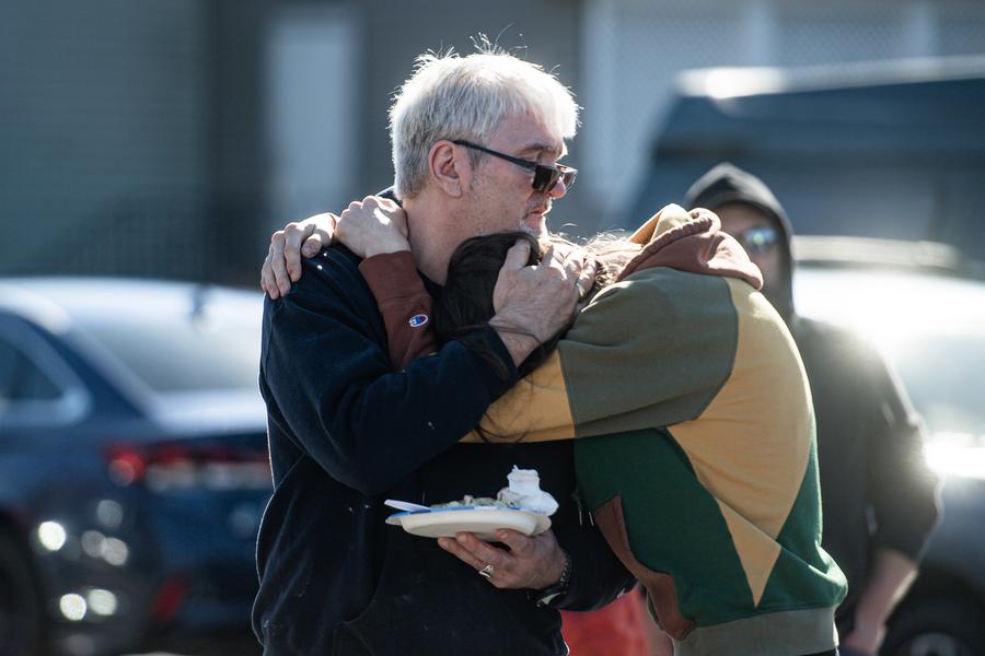 2024年10月25日,人們在美國緬因州劉易斯頓市悼念槍擊案遇難者。新華社發(fā)(朱子于攝)