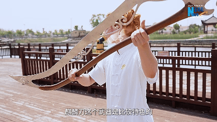 麒麟刀是傳統(tǒng)器械的一種,屬于長(zhǎng)兵器,全套動(dòng)作以劈、砍、斬、撩、掛、挑、勻、掃為主。在可欣的眼中,麒麟刀很大也很重,但動(dòng)作有氣勢(shì),在習(xí)練過(guò)程中體會(huì)到了中華傳統(tǒng)武術(shù)的精神和魅力。