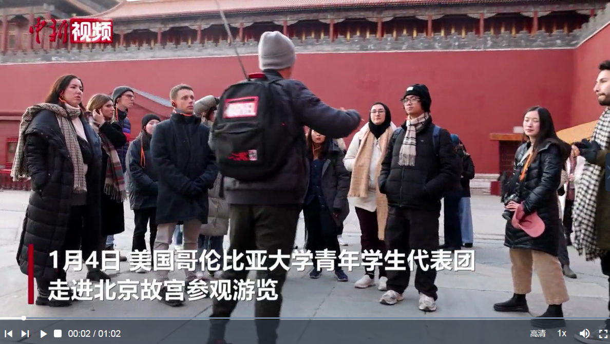 1月4日,美國哥倫比亞大學青年學生代表團走進北京故宮參觀游覽,感受中國古代皇家宮殿建筑群的魅力。2025年新年伊始,美國哥倫比亞大學青年學生代表團于元旦當天抵達北京。他們將在中國停留10天,相繼訪問北京、西安和上海等多個城市。代表團由哥倫比亞大學國際事務和公共管理專業(yè)的27名碩士研究生組成,他們分別來自全球17個國家。該代表團在北京體驗傳統的“三件套”——長城、故宮和烤鴨。西安和上海也為他們量身定制了參訪行程。青年學生們期待著通過這次訪華加深對中國各地的了解,與中國青年交流互動,成為好伙伴、好朋友。(記者 卞正鋒 制作 王佳琪)