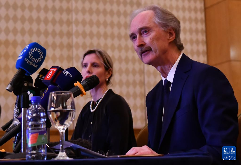 1月22日,聯(lián)合國(guó)秘書(shū)長(zhǎng)敘利亞問(wèn)題特使裴凱儒在敘利亞大馬士革舉行的新聞發(fā)布會(huì)上講話(huà)。新華社發(fā)(阿馬爾·薩法爾賈拉尼攝)