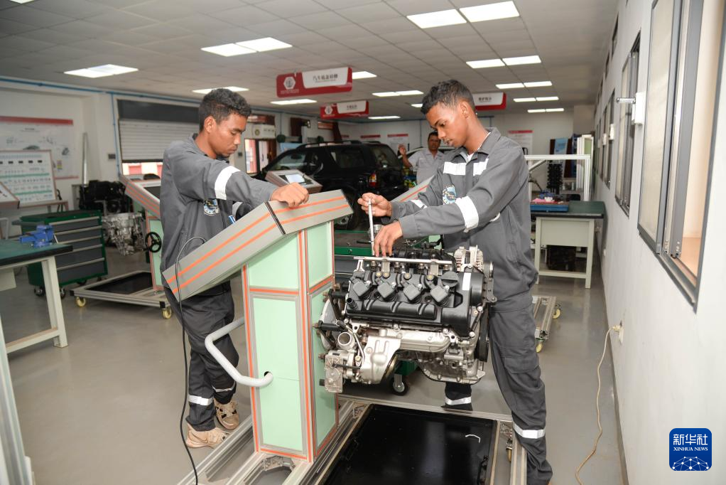 2月10日,在馬達(dá)加斯加首都塔那那利佛的魯班工坊,汽車工程專業(yè)學(xué)生進(jìn)行教學(xué)實(shí)踐。新華社發(fā)(西塔卡·拉喬納里松攝)