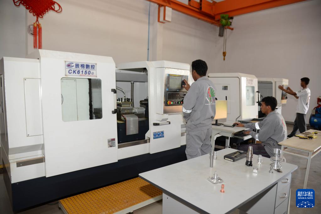 2月10日,在馬達(dá)加斯加首都塔那那利佛的魯班工坊,機(jī)械工程專業(yè)學(xué)生進(jìn)行數(shù)控機(jī)床的教學(xué)實(shí)踐。新華社發(fā)(西塔卡·拉喬納里松攝)