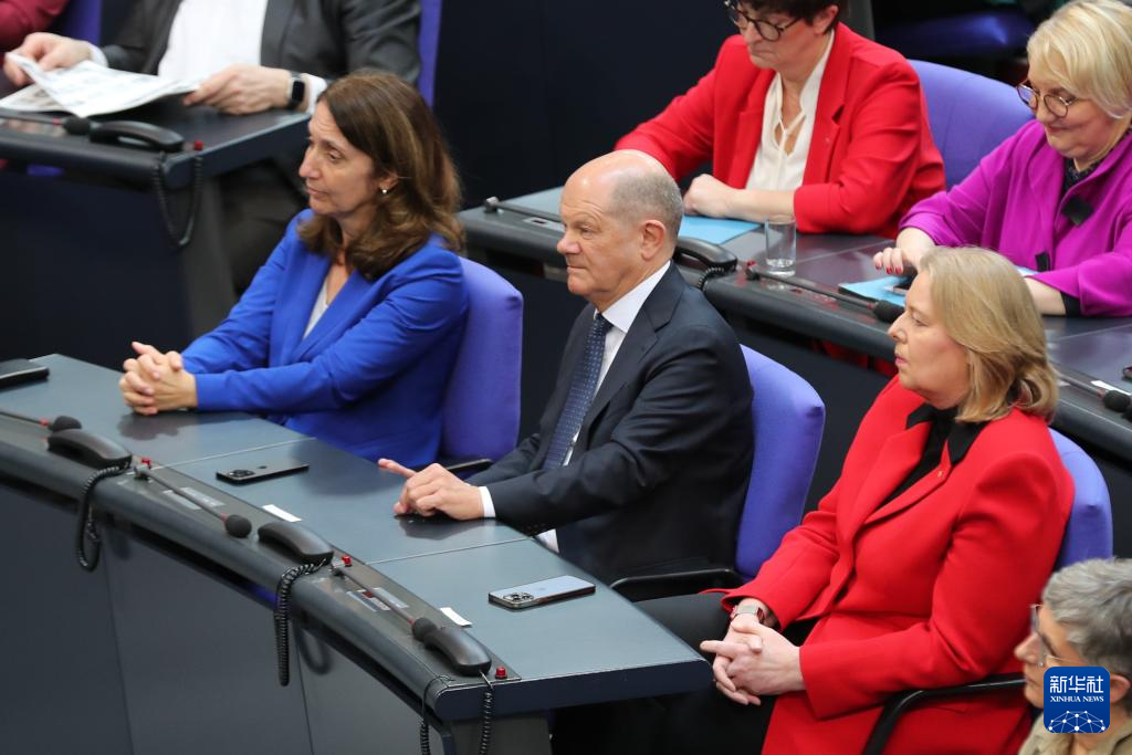 3月25日,在德國柏林,朔爾茨(中)出席新一屆德國聯(lián)邦議院首次全體會議。新華社記者 杜哲宇 攝