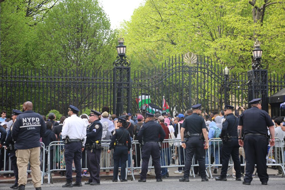 2024年4月30日,警察在美國紐約哥倫比亞大學外警戒。新華社記者劉亞南 攝