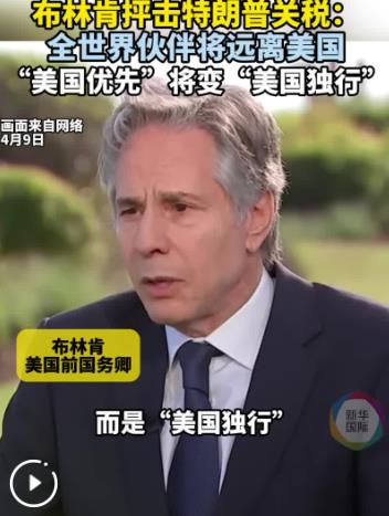 美國(guó)前國(guó)務(wù)卿布林肯日前接受媒體采訪時(shí)表示,美國(guó)現(xiàn)任政府對(duì)全球加征關(guān)稅,將動(dòng)搖美國(guó)家信譽(yù),導(dǎo)致“美國(guó)優(yōu)先”變成“美國(guó)獨(dú)行”。