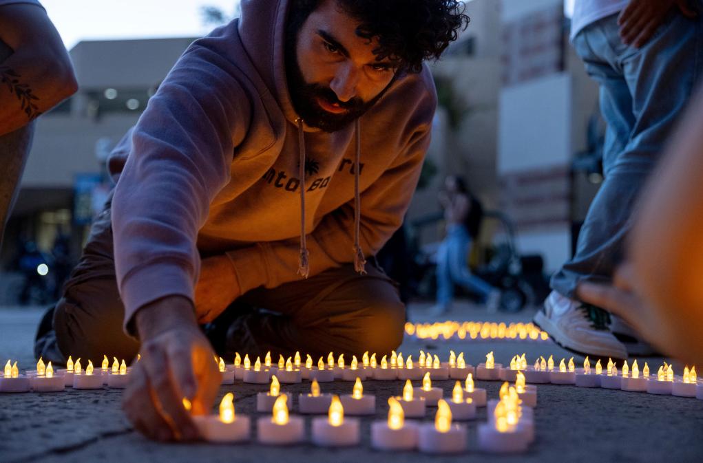 2024年10月7日,新一輪巴以沖突爆發(fā)一周年之際,在美國加利福尼亞州洛杉磯,加利福尼亞大學(xué)洛杉磯分校的學(xué)生們參加集會活動時(shí)點(diǎn)亮蠟燭。新華社/美聯(lián)