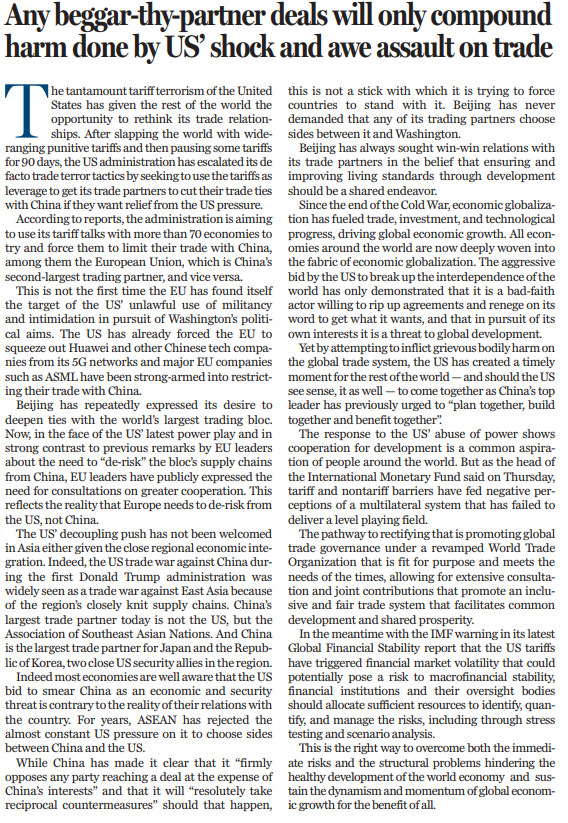 原標(biāo)題:Any beggar-thy-partner deals will only compound harm done by US' shock and awe assault on trade