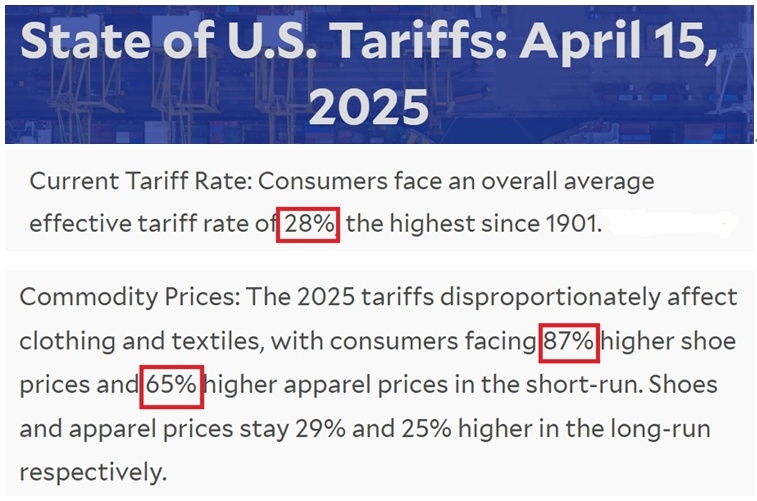報告還指出,美國消費者當前面臨的平均關(guān)稅稅率高達28%,為1901年以來的最高水平。