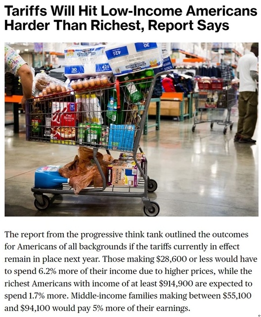 用耶魯預(yù)算實驗室主任、白宮經(jīng)濟顧問委員會前首席經(jīng)濟學家厄尼·特德斯奇的話說,“美國低收入人群受到關(guān)稅的影響會更大”。