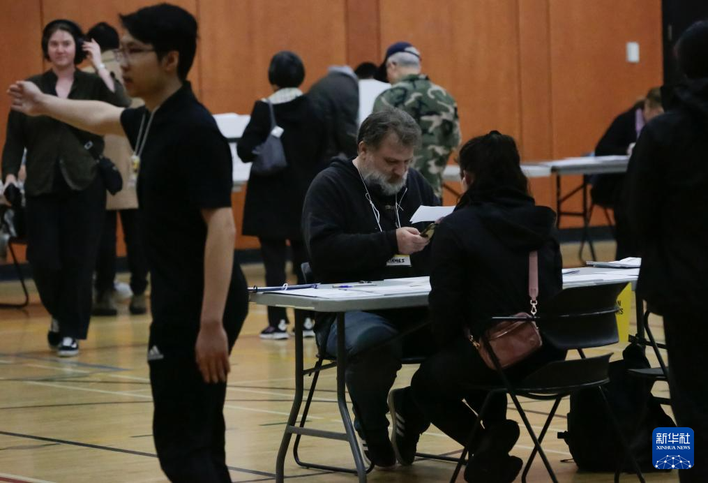 4月28日,選民在加拿大溫哥華一處投票站登記。新華社發(fā)(梁森攝)