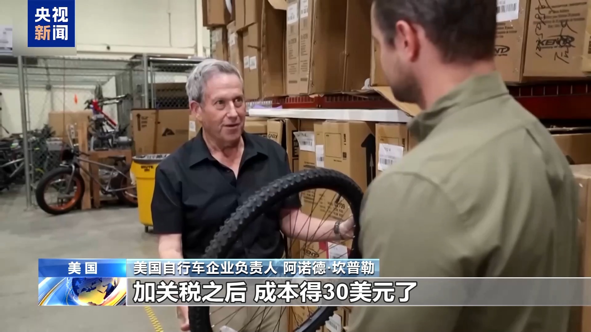 美國自行車企業(yè)負責人 阿諾德·坎普勒:像這樣一個輪子,我們原來的成本大約是10到12美元,加關(guān)稅之后,成本得30美元了。