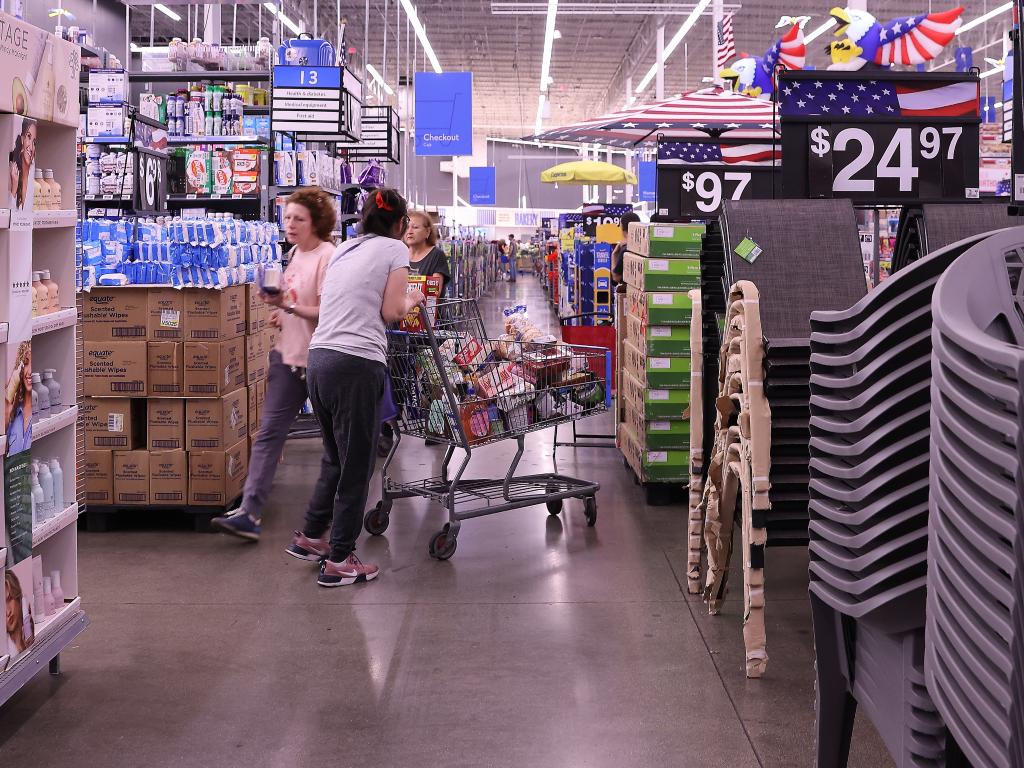 5月20日,顧客在美國(guó)加利福尼亞州洛杉磯縣一家沃爾瑪商店內(nèi)采購(gòu)商品。新華社發(fā)(邱晨攝)