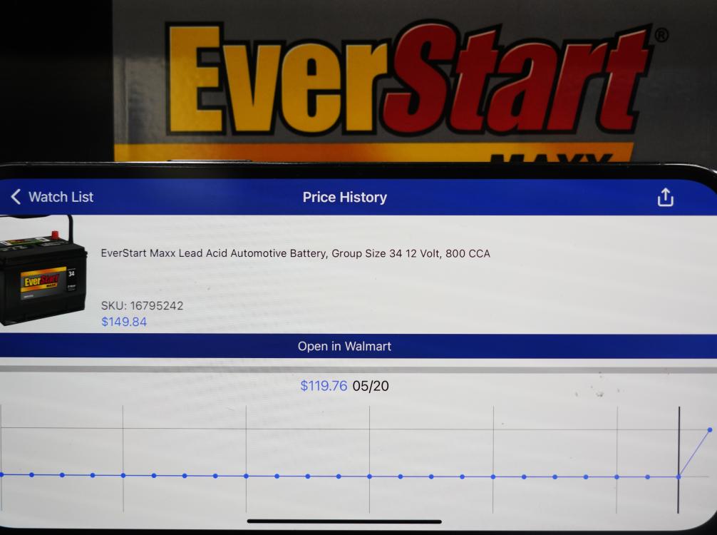 5月21日,在美國(guó)舊金山灣區(qū)圣利安卓San Leandro的一家沃爾瑪超市,價(jià)格跟蹤軟件(Walmart Tracker)顯示商品(EverStart汽車(chē)蓄電池)售價(jià)變化。新華社記者吳曉凌攝
