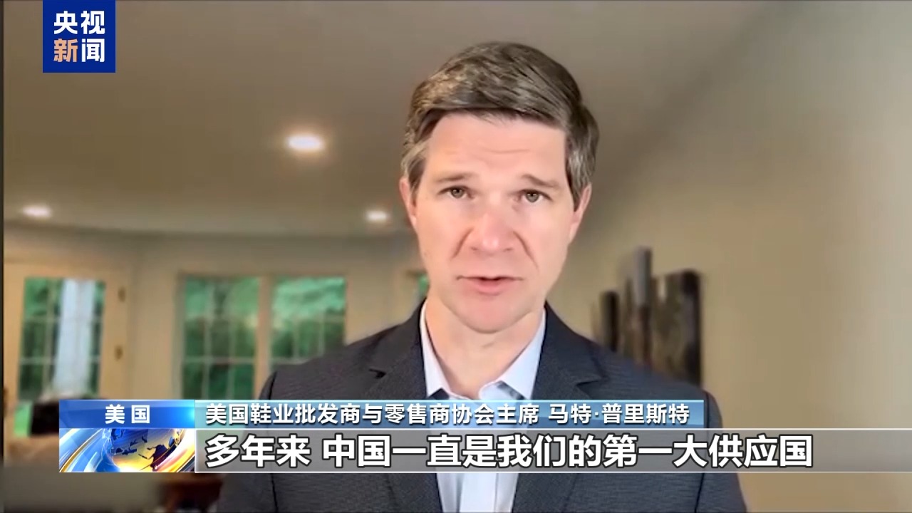 美國鞋業(yè)批發(fā)商與零售商協(xié)會(huì)主席 馬特·普里斯特:多年來,中國一直是我們的第一大供應(yīng)國。