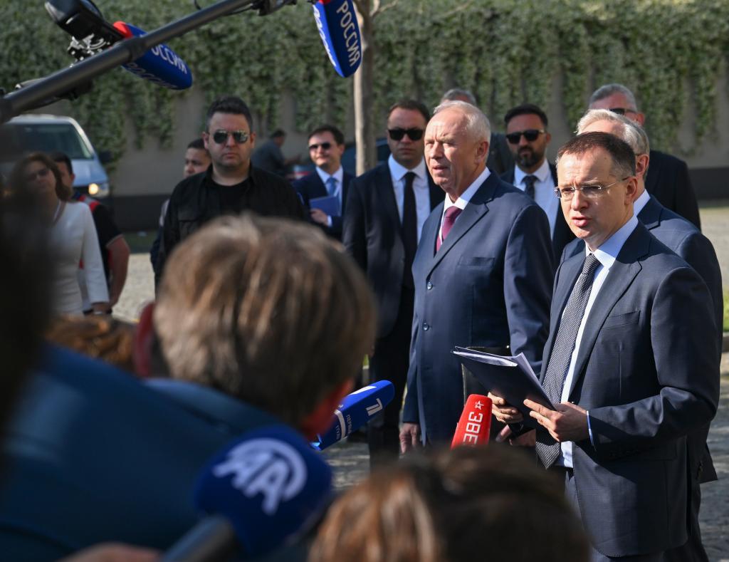 6月2日,在土耳其伊斯坦布爾舉行的俄烏第二輪直接談判結(jié)束后,俄羅斯總統(tǒng)助理、俄方談判代表團(tuán)團(tuán)長梅金斯基(右一)向媒體公布談判結(jié)果。新華社記者劉磊攝