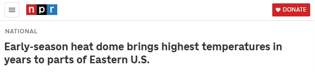 據(jù)美國全國公共廣播公司(NPR)報道,本周美國大部分地區(qū)遭受了極端高溫侵襲,被危險的“高溫穹頂”籠罩,多地氣溫飆升至38℃以上,部分地區(qū)更是出現(xiàn)了近十年未見的酷熱天氣。美國國家海洋和大氣管理局(National Oceanic and Atmospheric Administration)前首席科學(xué)家瑞安·莫伊指出,24日,全美近四分之三的人口面臨32℃或以上的高溫天氣;而25日,約10%的美國人遭遇了38℃的酷熱考驗。