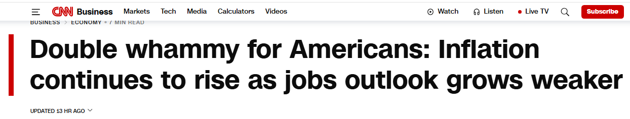 CNN報(bào)道說,美國經(jīng)濟(jì)看似在政策調(diào)控下實(shí)現(xiàn)了“表面穩(wěn)定”,但這份“穩(wěn)定”并未傳導(dǎo)至民生層面,老百姓面臨的生活壓力絲毫沒有減輕。