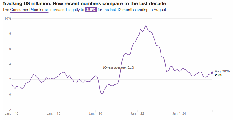 美國勞工統(tǒng)計(jì)局最新數(shù)據(jù)顯示,2025年8月消費(fèi)者價格指數(shù)(CPI)環(huán)比上漲0.4%,年通脹率攀升至2.9%,不僅創(chuàng)下今年1月以來的最高水平,而且增速超過7月的2.7%。