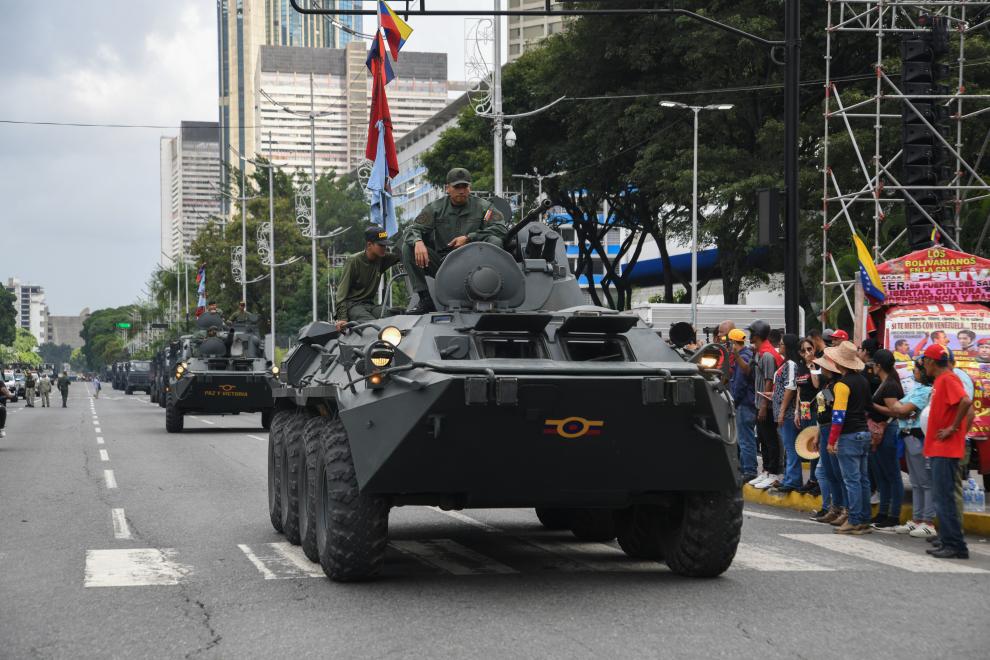 9月23日,在委內(nèi)瑞拉首都加拉加斯,參加游行的裝甲車輛列隊(duì)行進(jìn)。當(dāng)天,加拉加斯舉行大規(guī)模游行,呼吁保衛(wèi)委內(nèi)瑞拉主權(quán)與和平,反對(duì)美國(guó)在加勒比海域的軍事威脅。新華社發(fā)(馬科斯·薩爾加多攝)