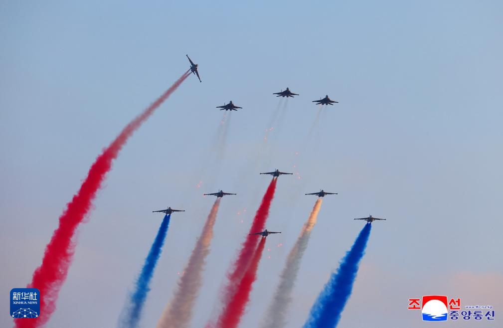 這張朝中社提供的照片顯示的是朝鮮空軍飛機(jī)進(jìn)行飛行表演。新華社/朝中社