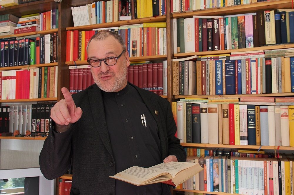 南因果家中幾乎沒有空白墻面,滿壁都是他父親用非常結(jié)實(shí)的木頭自制的書架,上面放著他收藏和時(shí)常查閱的書。據(jù)他說,70%是關(guān)于中國的學(xué)術(shù)書籍,因?yàn)樗菨h學(xué)家和民族學(xué)家。他家中還有大量馬列書籍和中共黨史書籍,這也是他主要的興趣點(diǎn)和研究領(lǐng)域。有次德國一個大學(xué)城舉辦一場中共黨史研討會,南因果的演講非常精彩。他用幻燈片講了很多中共早期少數(shù)民族高層干部的故事,以此說明,中共早期就很重視發(fā)揮少數(shù)民族人才的作用,西方國家說中國政府壓制少數(shù)民族是不對的。有圖,有生動事例,有真相,一下子就調(diào)動起了現(xiàn)場氣氛。記者還親歷過2008年他在萊比錫舉行的一次演講,也很出彩,因?yàn)樗谖鞑啬撩窦易∵^一個月,做民族學(xué)田野調(diào)查。他講的一些糾正德媒對西藏偏頗報(bào)道的西藏文化發(fā)展生動實(shí)例,讓普通德國聽眾聽得直鼓掌。