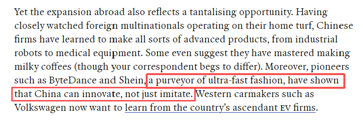 文章最后說(shuō),未來(lái)全球消費(fèi)者或?qū)㈠忮烁嘀袊?guó)品牌。