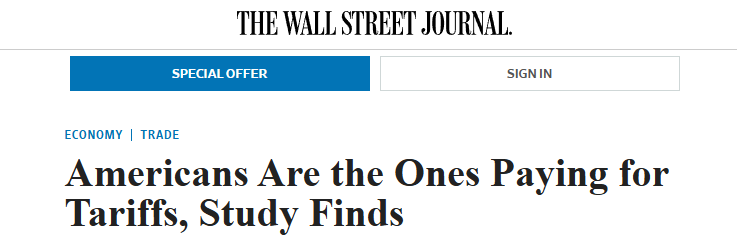 該研究與耶魯大學預算實驗室和哈佛商學院經濟學家最近的報告相呼應。報告發(fā)現(xiàn),只有一小部分關稅成本是由外國生產商承擔的。