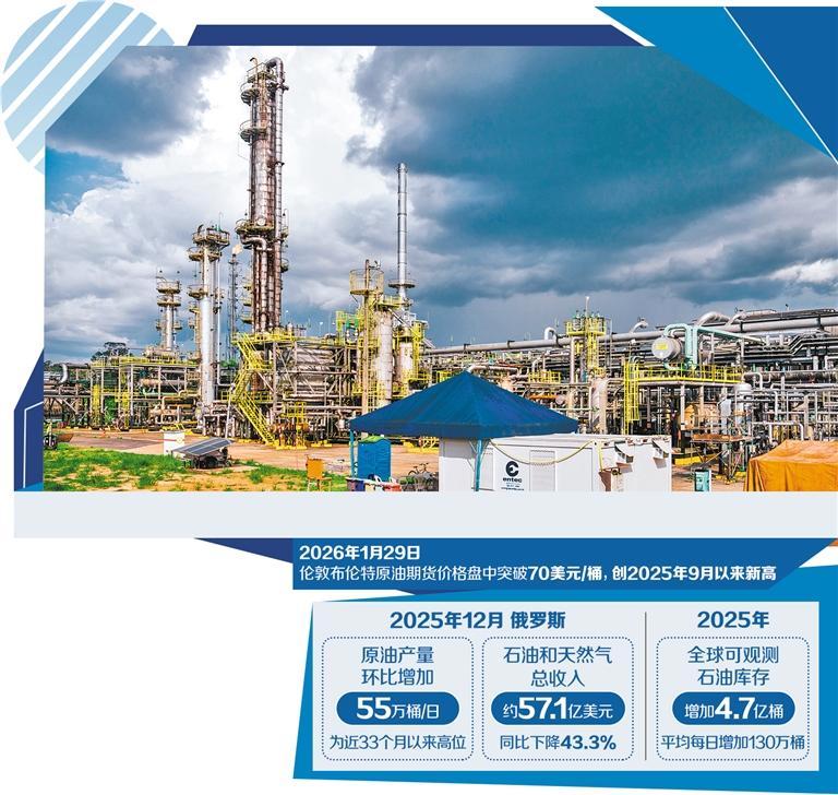 國際能源署(IEA)近日發(fā)布2026年1月《全球石油市場(chǎng)報(bào)告》顯示,受地緣因素?cái)_動(dòng)、美國寒潮以及美元指數(shù)走弱等影響,倫敦布倫特原油期貨價(jià)格1月29日盤中突破70美元/桶關(guān)口,創(chuàng)下2025年9月以來新高。