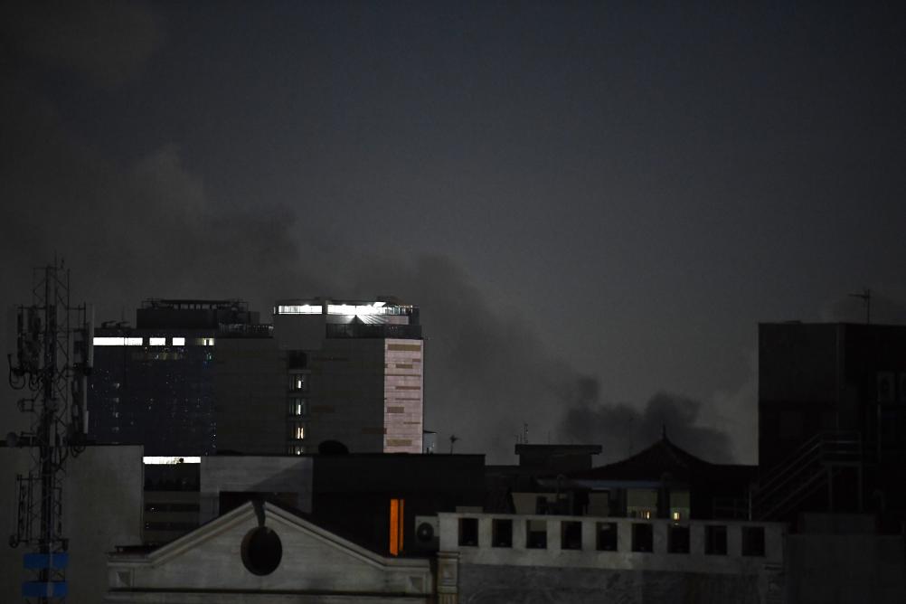 這是3月1日晚在伊朗首都德黑蘭市區(qū)拍攝的濃煙。新華社記者沙達(dá)提攝