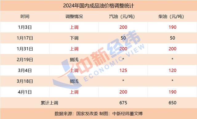 今年以來,國內(nèi)油價已進(jìn)行了七輪調(diào)整,呈現(xiàn)“四漲一跌兩擱淺”的格局。漲跌互抵后,國內(nèi)汽、柴油價格每噸較去年底分別上調(diào)675元、650元。