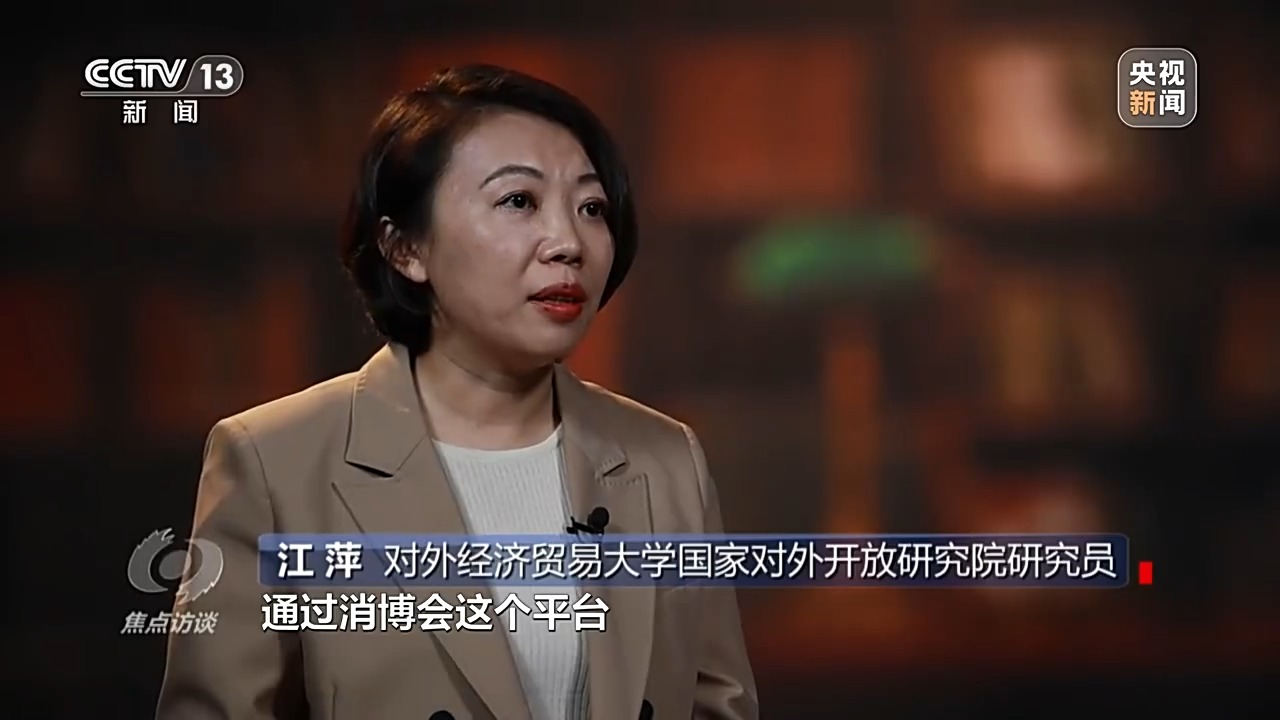 對外經(jīng)濟(jì)貿(mào)易大學(xué)國家對外開放研究院研究員 江萍:反映出整個中國經(jīng)濟(jì)持續(xù)向好,也體現(xiàn)了中國隨著經(jīng)濟(jì)不斷增長,人民生活水平不斷提高,這個市場對他們來說肯定非常有吸引力。很多企業(yè)通過參展或者觀展,能夠感受到消費(fèi)市場新的趨勢、新的需求,然后通過自己的產(chǎn)品創(chuàng)新,來滿足消費(fèi)者消費(fèi)創(chuàng)新上的需求。