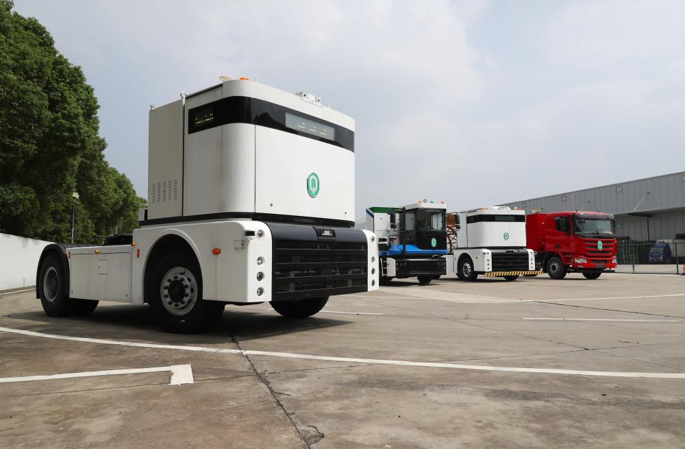一輛西井科技的無人駕駛重卡Q-Truck(前)在位于上海的無人駕駛商用車聯(lián)合實(shí)驗(yàn)室場地上進(jìn)行動(dòng)態(tài)測試(2023年9月26日攝)。 新華社記者 方喆 攝