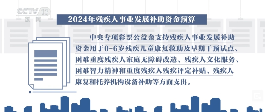 財政部4月26日下達(dá)了2024年殘疾人事業(yè)發(fā)展補助資金預(yù)算,包括,一般公共預(yù)算資金和中央專項彩票公益金支持殘疾人事業(yè)發(fā)展補助資金。