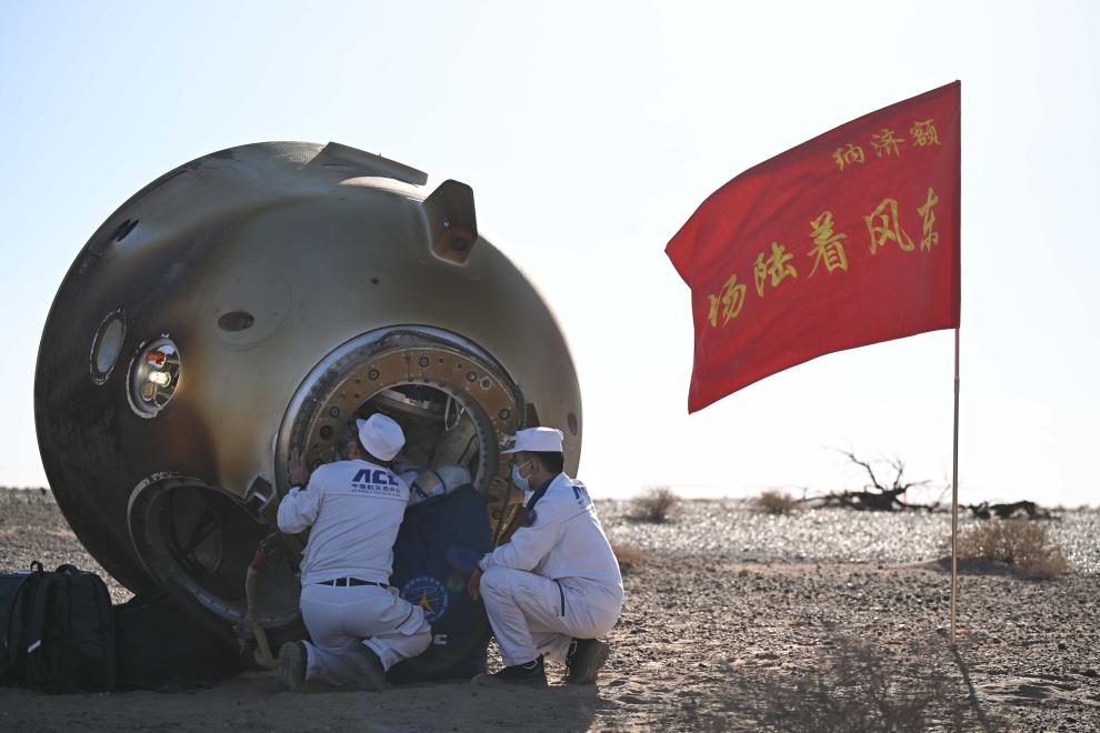 2024年4月30日,神舟十七號載人飛船返回艙在東風著陸場成功著陸。