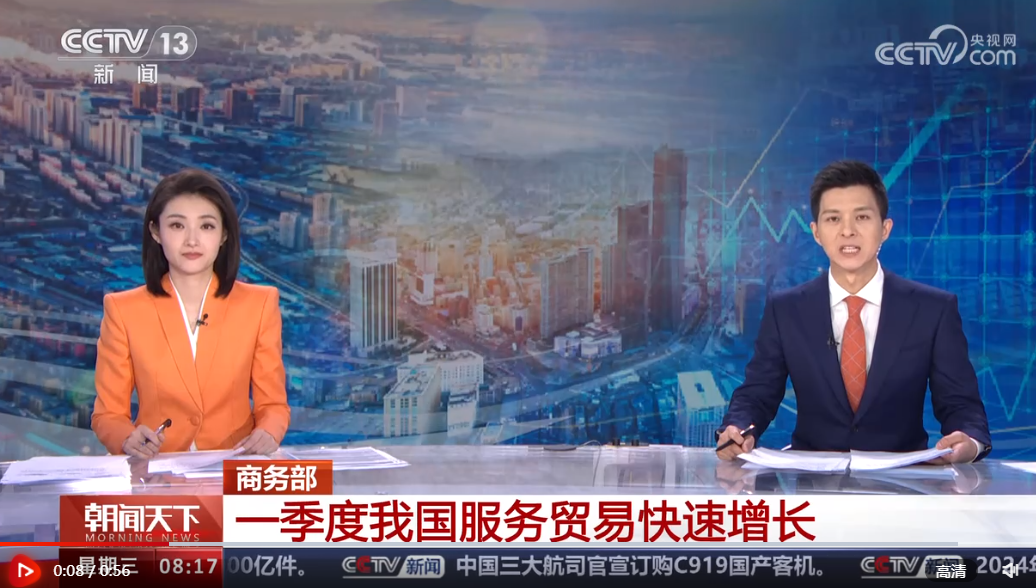 商務部4月30日公布的數(shù)據(jù)顯示,2024年一季度,我國服務進出口總額18167.4億元人民幣,同比增長14.7%。
