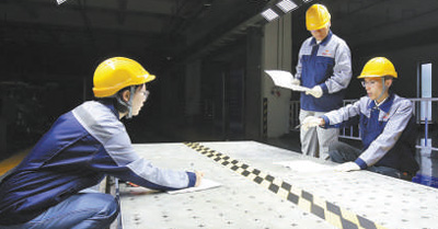 江蘇省蘇州高新區(qū)蘇高新股份下屬企業(yè)世力源總工程師溫晶晶(右一)與同事開展設(shè)計試驗。 本報記者 王偉健攝